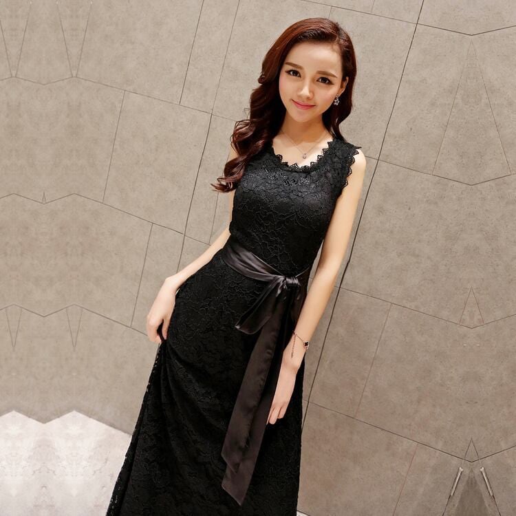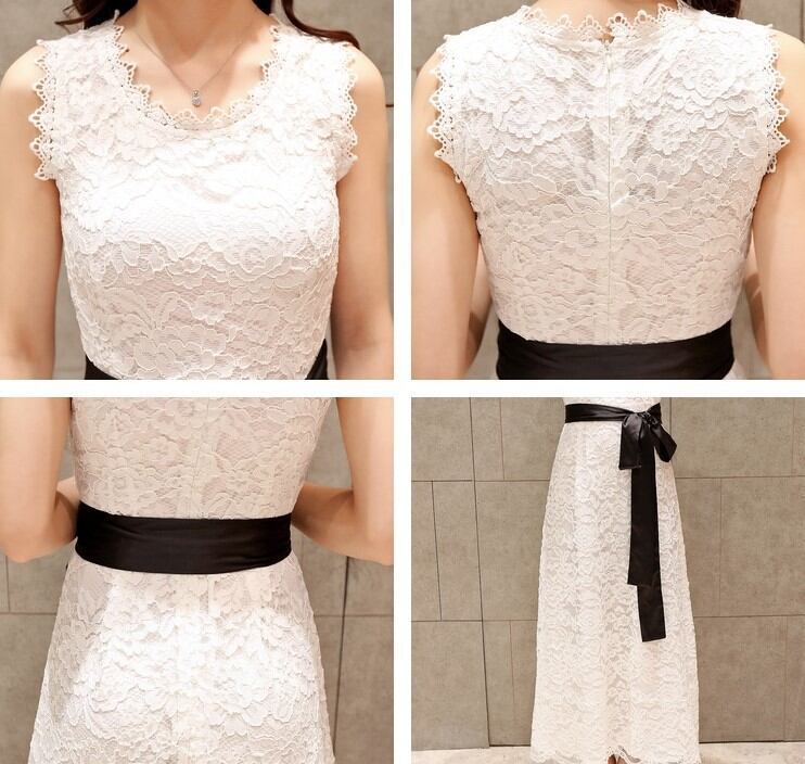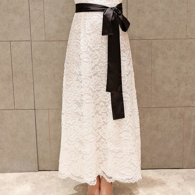 size:XL: 着丈112cm / 身幅40cm / バスト96cm カラー:黒・白 セミイブニングやカクテルドレスとしてもお使いいただける総レースのロングワンピース。 デコルテのあきが少なく、清楚に落ち着いた雰囲気。 ボリュームを抑えた大人シルエットをサテンリボンや裾のスカラップがキュートに仕上げます。 パーティーや演奏会、発表会のお衣装に。